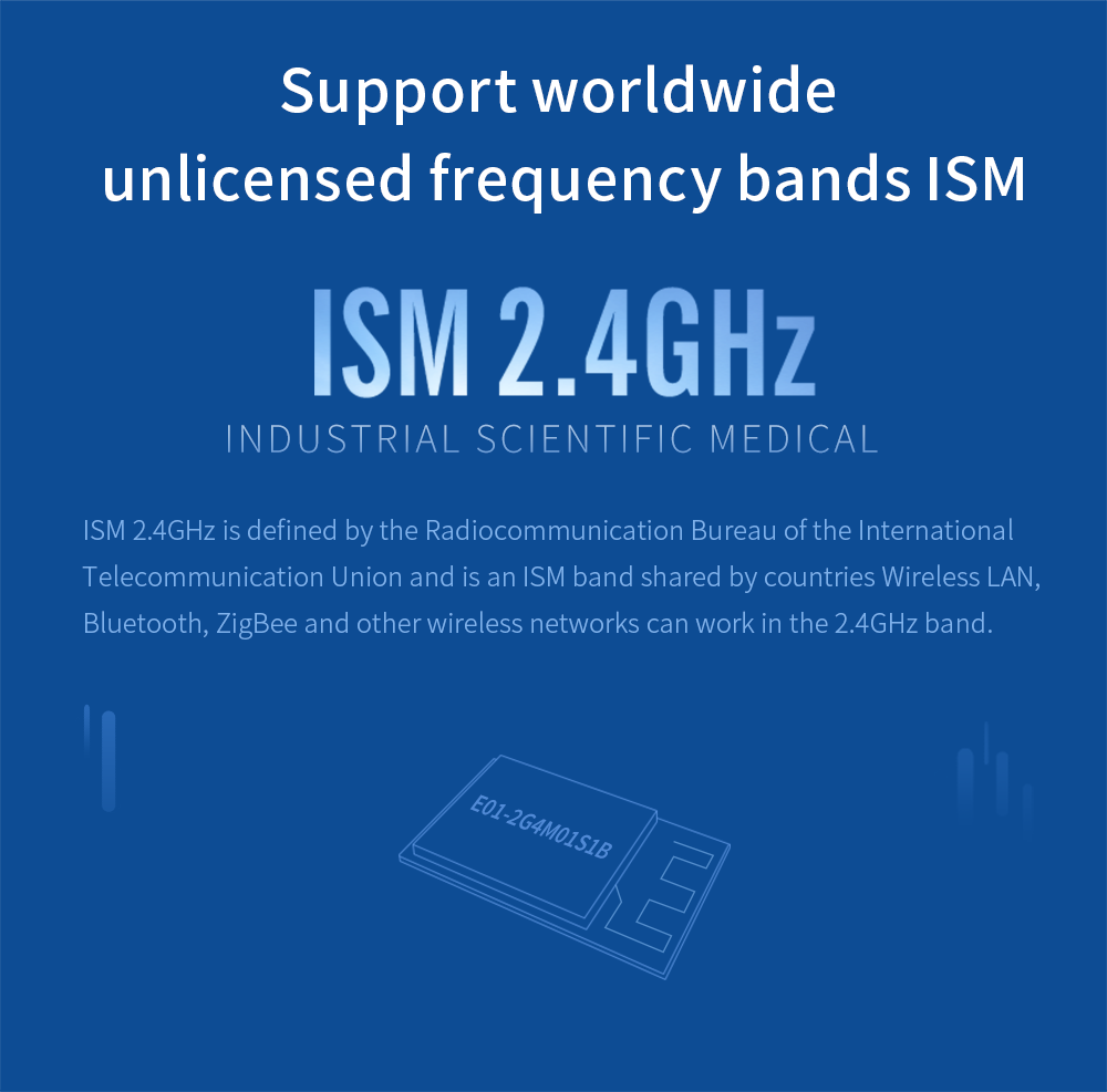 Limit Parameters Main Parameters Value Remarks Min. Max Voltage supply(V) 0 3.6 Voltage over 3.6V will causepermanent damage to module Blocking power(dBm) - 10 Chances of burn is slim when modulesare used in short distance Working temperature(℃) -40 85 - Operating parameter Main Parameters Value Remarks Min. Typical Max Operating voltage(V) 2 3.3 3.6 ≥3.3 V ensures output power Communication level(V) - 3.3 - For 5V TTL, it may be at risk ofburning down Operating temperature(℃) -40 25 85 Industrial design Operating frequency(GHz) 2.4 - 2.525 Support ISM band TX Current(mA) 12.5 13 13.5 Instant power consumption RX current(mA) 11.5 12 12.5 - Sleep current(μA) - 1 - Software is shut down Max Tx power(dBm) 4.5 5 5.5 set as 0dBm via software, with PA Receiving sensitivity(dBm) -92 -93 -94 Air data rate is 250kbps Air data rate(bps) 250k 250k 2M Controlled by user's programming Main parameter Description Remarks Distance 200m in open and clear air, at height of 2.5m,air data rate:250kbps FIFO 32 Byte Max packet length per time Crystal Frequency 16MHz - Modulation GFSK - Package SMD - Connector half hole 1.27mm - Communication interface SPI 0-10Mbps Size 12 * 19mm with PCB antenna Antenna PCB 50 ohm impedance