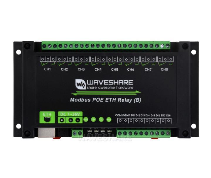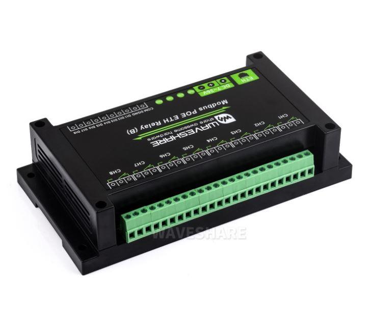 8-ch Ethernet Relay Module (B) With Digital Input, Modbus RTU/Modbus TCP Protocol, PoE Port Communication, With Various Isolation And Protection Circuits, Industrial Grade Rail-Mount Case