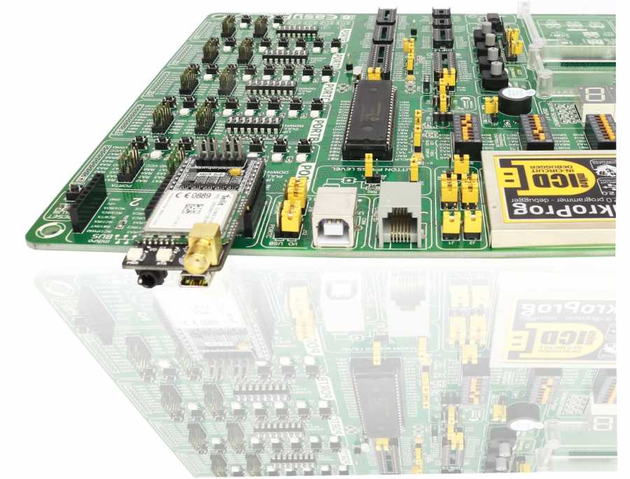 "t865 BoB " is a formative with a microBUS structure. It is an effective and easy solution for adding GSM/GPRS solutions into your design. It features the Telit GL865-DUAL or UL865-EUR module, a SMA connector for an antenna, a SIM CARD socket. tGSM BoB communicates with the target board microcontroller via microBUS ( Rx, Tx, Rx2, Tx2, RTS, CTS, Reset, GPIOs ). Only for UL865-EUR Module, has USB Port. The Audio Connector is compatible with Iphone, Samsung, HTC headsets. It has two LED diodes for power indicator and status.Features: