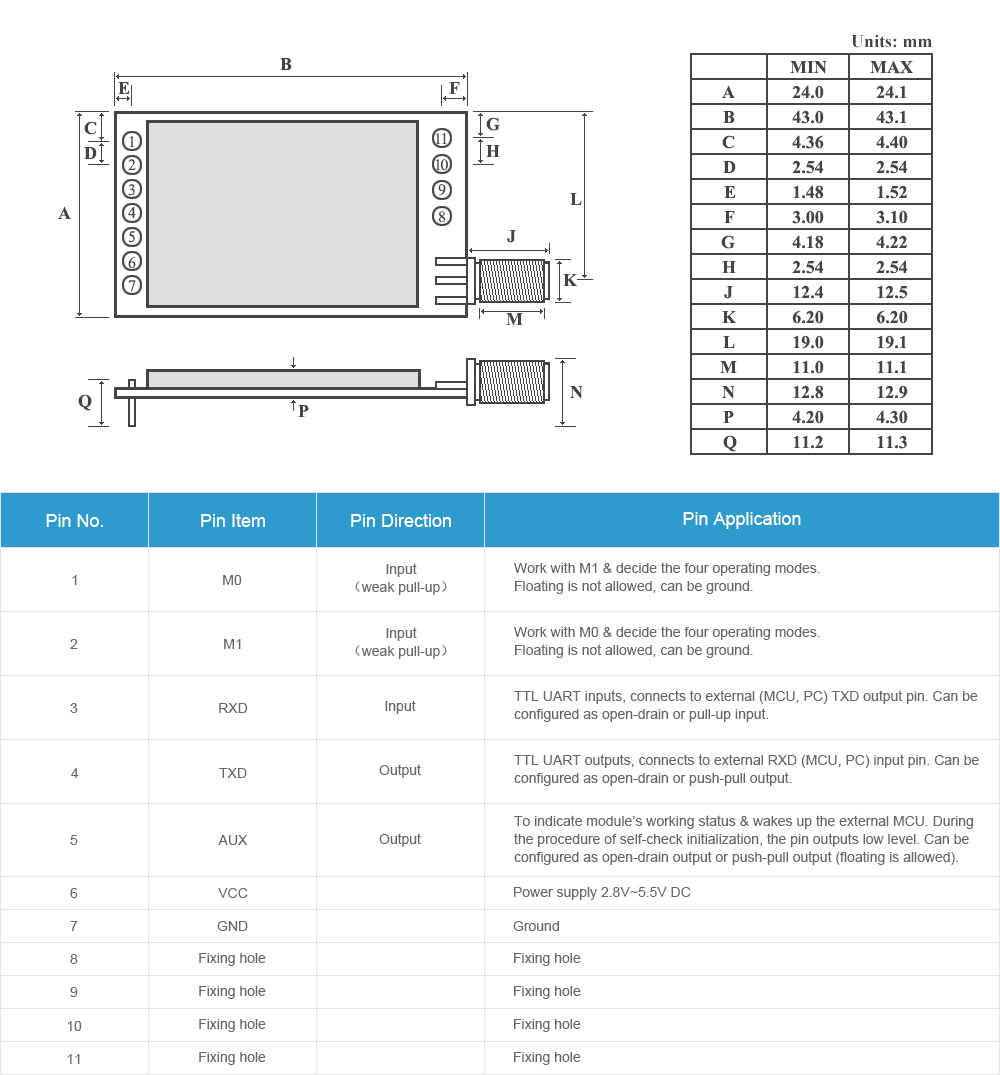 [IC] : SX1278[Frequency] : 433MHz[Power] : 30dBm[Distance] : 8.0km[Interface] : UART
