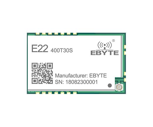 RF Parameter Value Remark Working frequency 410.125~493.125 MHz Support ISM band Transmitting power 30 dBm Max. Power (1W) Receiving sensitivity -148 dBm Air data rate is 2.4kbps Air data rate 0.3k~62.5kbps Controlled via user's programming Test distance 10000m Test condition:clear and open area, antenna gain: 5dBi,antenna height: 2.5m,air data rate: 2.4kbps Hardware Parameter Value Remark Size 40.5 * 25 mm Antenna type IPEX / Stamp hole Communication interface UART Package SMD Electronic parameter Min. Typ. Max. Unit Condition Power supply 3.3 5 5.5 V ≥5.0 V ensures output power Communication level - 3.3 - V For 5V TTL, it may be at risk of burning down Transmitting current - 610 - mA Instant power consumption Receiving current - 17 - mA Sleep current - 2 - μA Software is shut down Operating temperature -40 20 85 ℃ Operating humidity 10 60 90 % Storage temperature -40 20 125 ℃