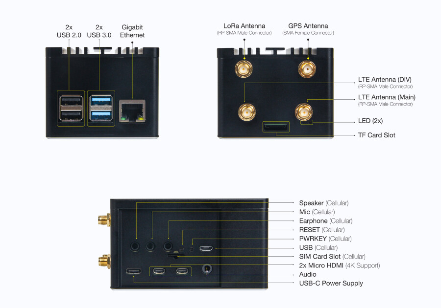 A compact form with plenty of interfaces. The RAK7244C model shown below supports LTE