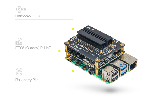The built-in RAK2245 Pi HAT uses the SX1301 RF front-end chip from Semtech, which is a powerful LoRa® digital processing engine. It is able to receive up to 8 LoRa® packets simultaneously sent with different spreading factors on different channels and available in multiple variants so it can be used for all LoRa Alliance® frequency bands. This unique capability allows for innovative network architectures to be implemented, which is advantageous over other short-range systems. The built-in RAK2013 Cellular Pi HAT is based on the EG95 from Quectel, which is an LTE CAT4 module optimized specifically for M2M and IoT applications.