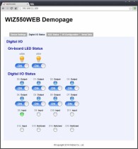 WIZ550web is an embedded Web server module based on WIZnet W5500 hardwired TCP/IP chip. User can control & monitor the 16-configurable digital I/O and 4-ADC inputs on module via web pages. WIZnet provides firmware & web page examples for user to customize their own objective.